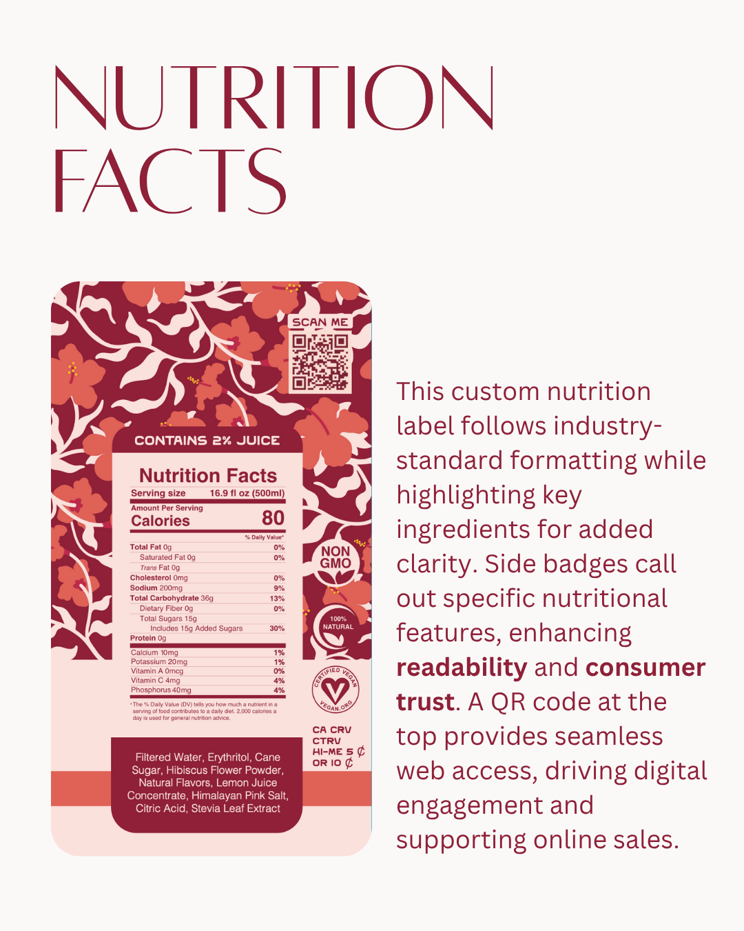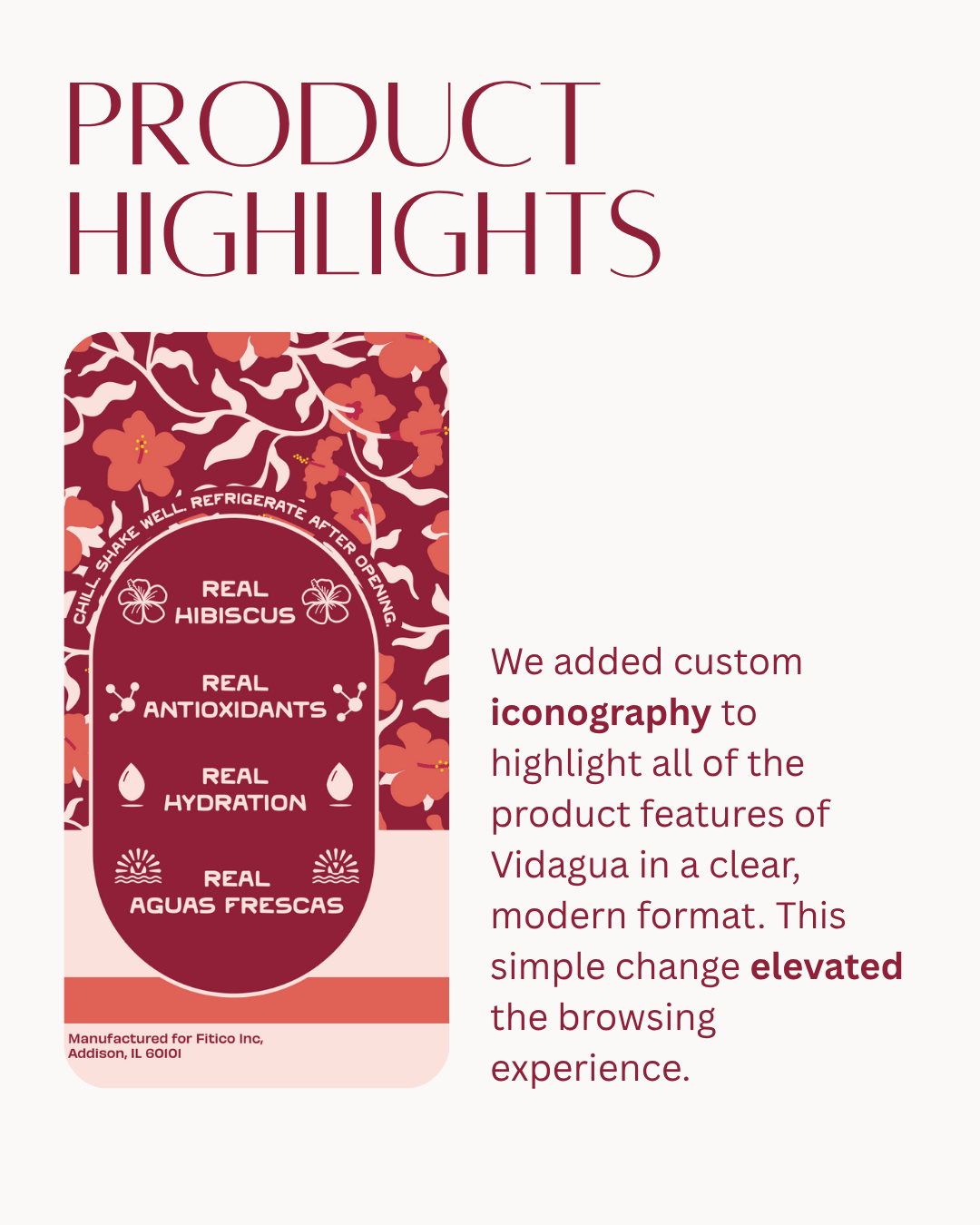 Objective: Take the existing Vidagua banding elements and label and restructure the sizing, nutrition label, and iconography